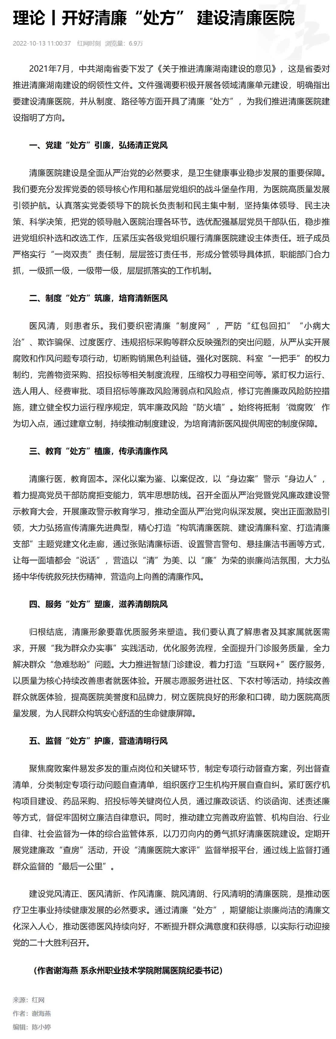 (作者谢海燕 系永州职业技术学院附属医院纪委书记)