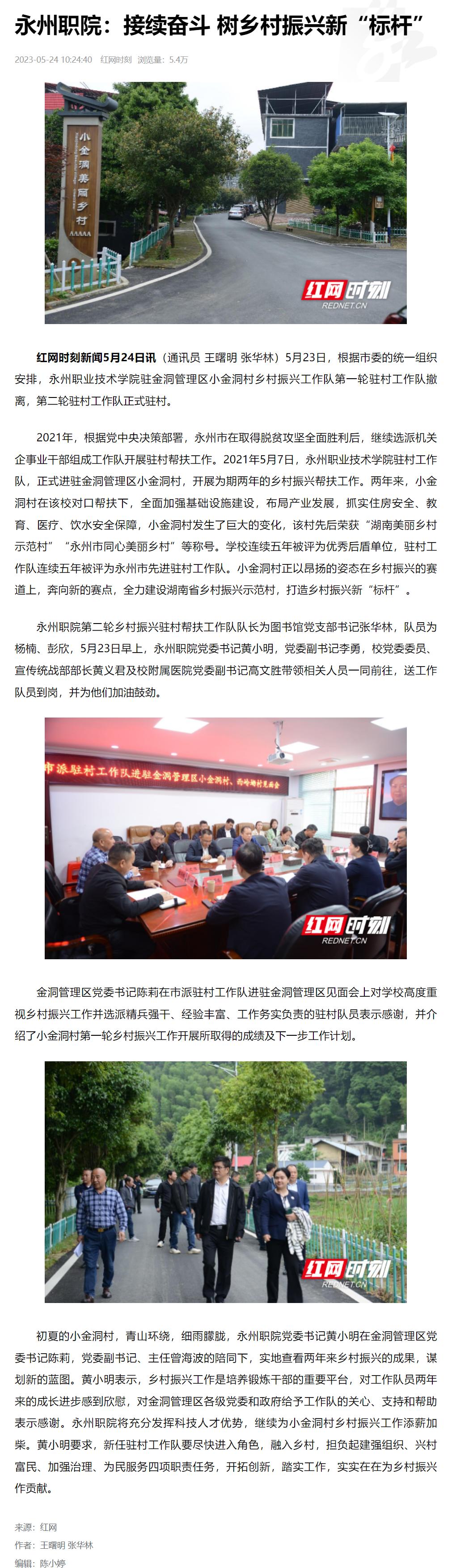 红网时刻新闻5月24日讯(通讯员 王曙明 张华林)5月23日,根据市委的统一组织安排,永州职业技术学院驻金洞管理区小金洞村乡村振兴工作队第一轮驻村工作队撤离,第二轮驻村工作队正式驻村。