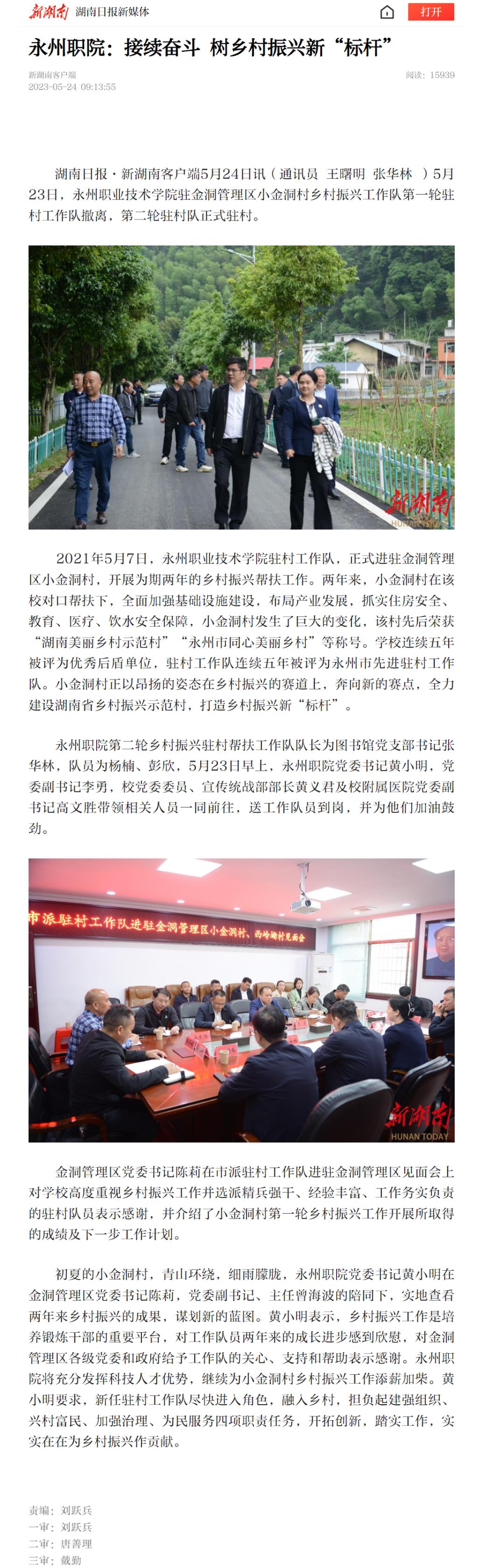 湖南日报·新湖南客户端5月24日讯(通讯员 王曙明 张华林 )5月23日,永州职业技术学院驻金洞管理区小金洞村乡村振兴工作队第一轮驻村工作队撤离,第二轮驻村队正式驻村。