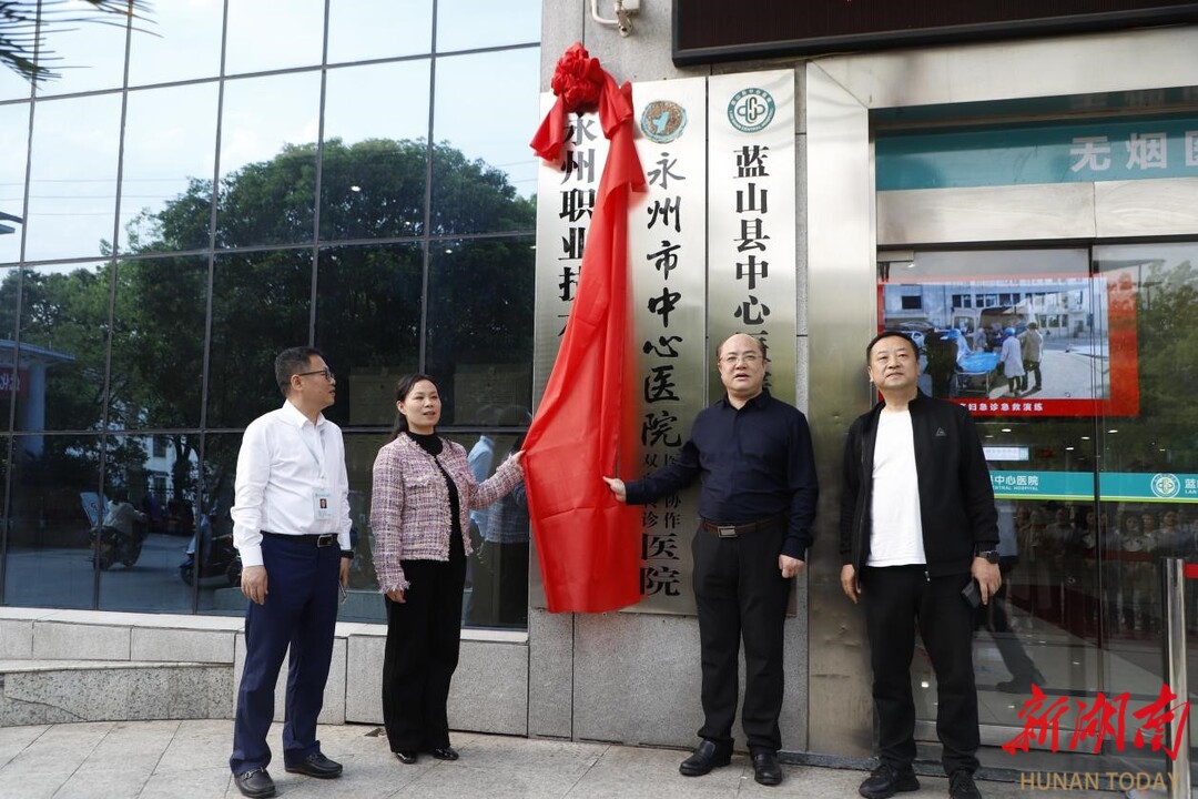 在与会人员的共同见证下,陈强与成章林代表双方签署《教学医院合作协议》,标志着院校共建正式迈入实施阶段。随后,刘飞鹰与陈强共同为“永州职业技术学院教学医院”揭牌。