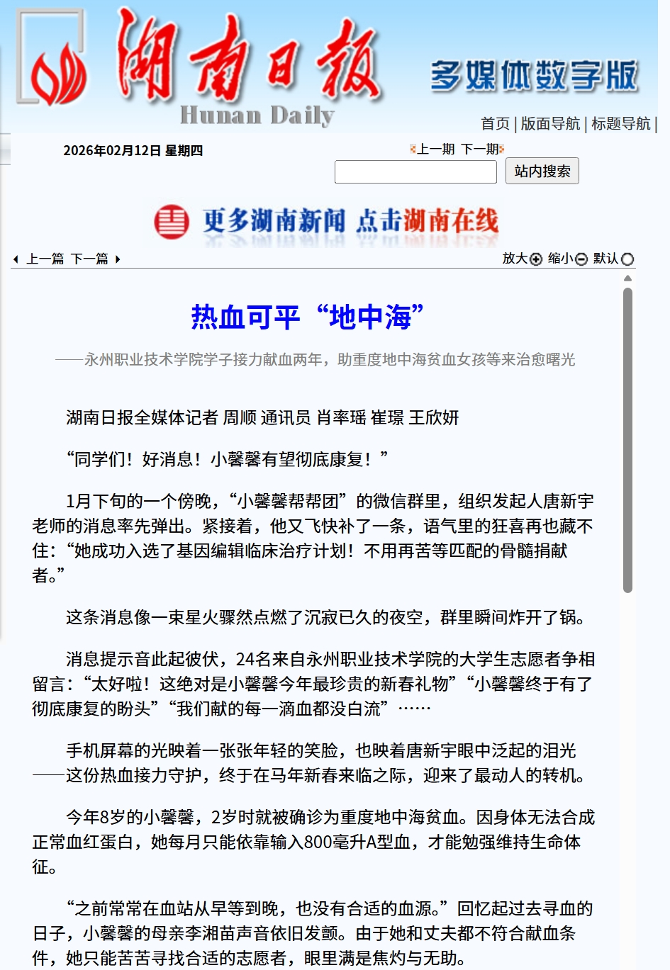 消息提示音此起彼伏,24名来自永州职业技术学院的大学生志愿者争相留言:“太好啦!这绝对是小馨馨今年最珍贵的新春礼物”“小馨馨终于有了彻底康复的盼头”“我们献的每一滴血都没白流”……