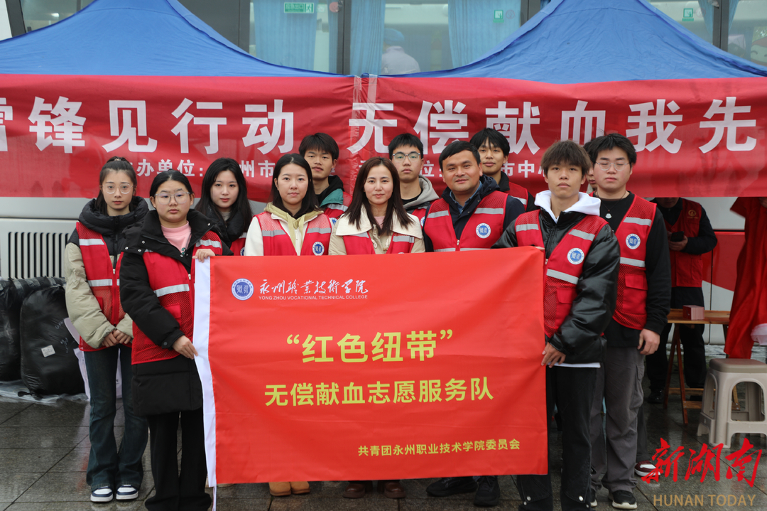 “这让我意识到,仍有一些人对献血存在认识误区。”唐新宇决定坚持无偿献血,影响和带动他人。2023年,他在永州职业技术学院发起成立“红色纽带无偿献血”志愿服务队,志愿者从最初的30人发展到700多人。如今,学校年献血量达50多万毫升。