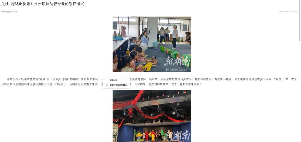 上一条:【红网】“考试也快乐!”——永州职院幼管专业的别样考试
