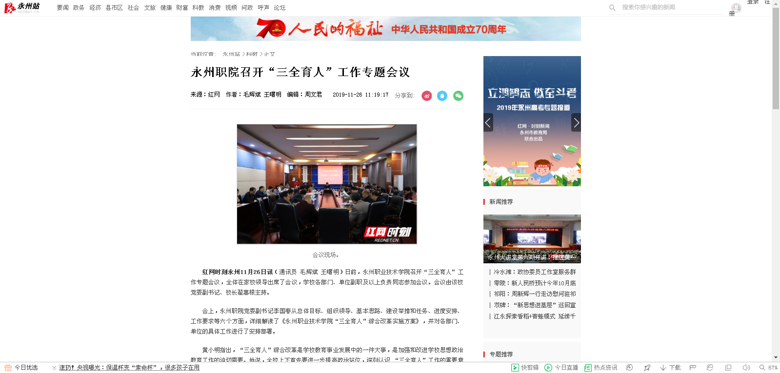 下一条:【红网】永州职院获市“牢记初心使命·传承红色家风”演讲比赛一等奖