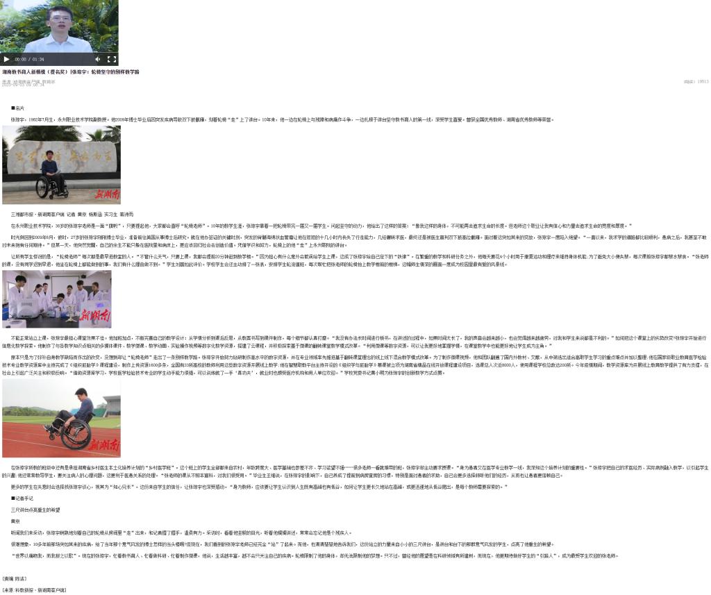 在永州职业技术学院,38岁的张琼宇老师是一面“旗帜”,只要提起他,大家都会直呼“轮椅老师”。10年的教学生涯,张琼宇靠着一把轮椅带完一届又一届学生。问起坚守的动力,他给出了这样的答案:“像我这样的身体,不可能再去追求生命的长度。但老师这个职业让我有信心和力量去追求生命的宽度和厚度。”