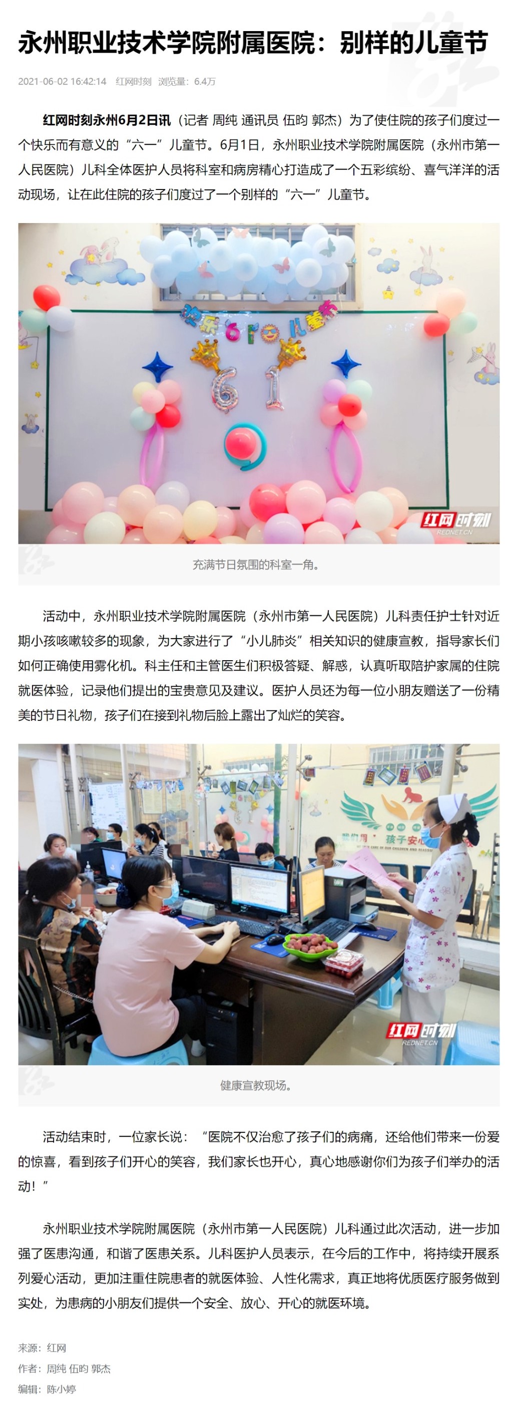 永州职业技术学院附属医院(永州市第一人民医院)儿科通过此次活动,进一步加强了医患沟通,和谐了医患关系。儿科医护人员表示,在今后的工作中,将持续开展系列爱心活动,更加注重住院患者的就医体验、人性化需求,真正地将优质医疗服务做到实处,为患病的小朋友们提供一个安全、放心、开心的就医环境。