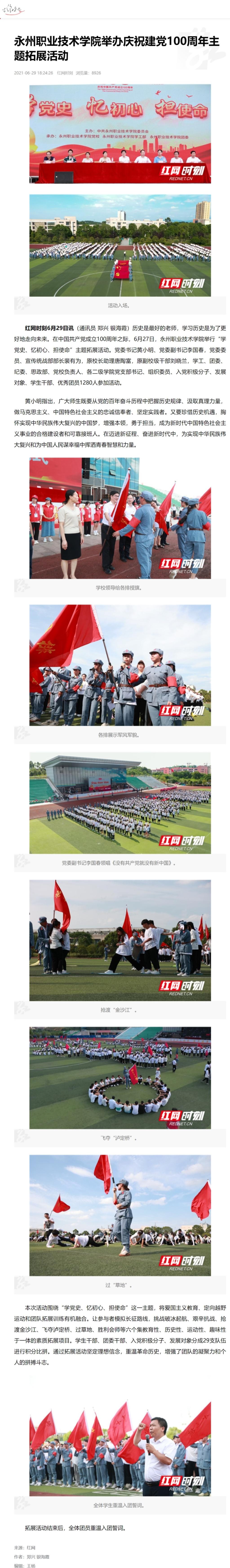 红网时刻6月29日讯(通讯员 郑兴 银海霞)历史是最好的老师,学习历史是为了更好地走向未来。在中国共产党成立100周年之际,6月27日,永州职业技术学院举行“学党史、忆初心、担使命”主题拓展活动。党委书记黄小明、党委副书记李国春,党委委员、宣传统战部部长裴有为,原校长助理唐陶富,原副校级干部刘晓兰,学工、团委、纪委、思政部、党校负责人、各二级学院党支部书记、组织委员、入党积极分子、发展对象、学生干部、优秀团员1280人参加活动。