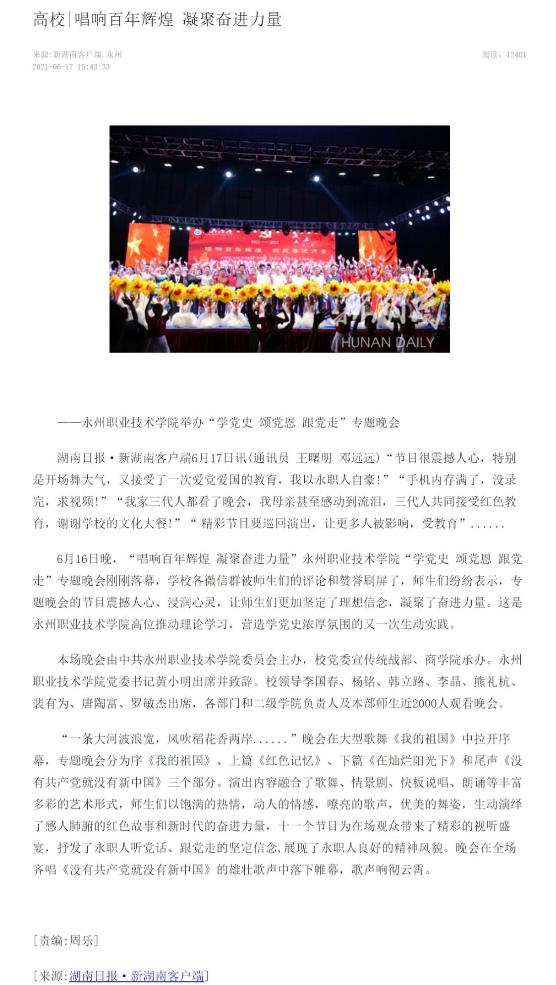 ——永州职业技术学院举办“学党史 颂党恩 跟党走”专题晚会