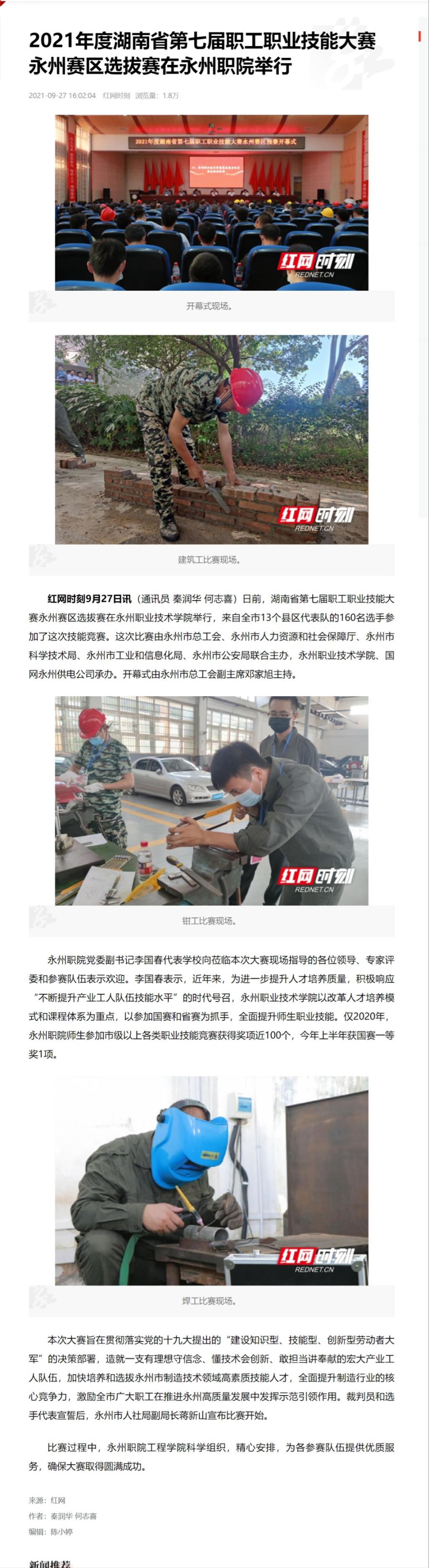 红网时刻9月27日讯(通讯员 秦润华 何志喜)日前,湖南省第七届职工职业技能大赛永州赛区选拔赛在永州职业技术学院举行,来自全市13个县区代表队的160名选手参加了这次技能竞赛。这次比赛由永州市总工会、永州市人力资源和社会保障厅、永州市科学技术局、永州市工业和信息化局、永州市公安局联合主办,永州职业技术学院、国网永州供电公司承办。开幕式由永州市总工会副主席邓家旭主持。永州职院党委副书记李国春代表学校向莅临本次大赛现场指导的各位领导、专家评委和参赛队伍表示欢迎。李国春表示,近年来,为进一步提升人才培养质量,积极响应“不断提升产业工人队伍技能水平”的时代号召,永州职业技术学院以改革人才培养模式和课程体系为重点,以参加国赛和省赛为抓手,全面提升师生职业技能。仅2020年,永州职院师生参加市级以上各类职业技能竞赛获得奖项近100个,今年上半年获国赛一等奖1项。本次大赛旨在贯彻落实党的十九大提出的“建设知识型、技能型、创新型劳动者大军”的决策部署,造就一支有理想守信念、懂技术会创新、敢担当讲奉献的宏大产业工人队伍,加快培养和选拔永州市制造技术领域高素质技能人才,全面提升制造行业的核心竞争力,激励全市广大职工在推进永州高质量发展中发挥示范引领作用。裁判员和选手代表宣誓后,永州市人社局副局长蒋新山宣布比赛开始。比赛过程中,永州职院工程学院科学组织,精心安排,为各参赛队伍提供优质服务,确保大赛取得圆满成功。来源:红网 作者:秦润华 何志喜 编辑:陈小婷