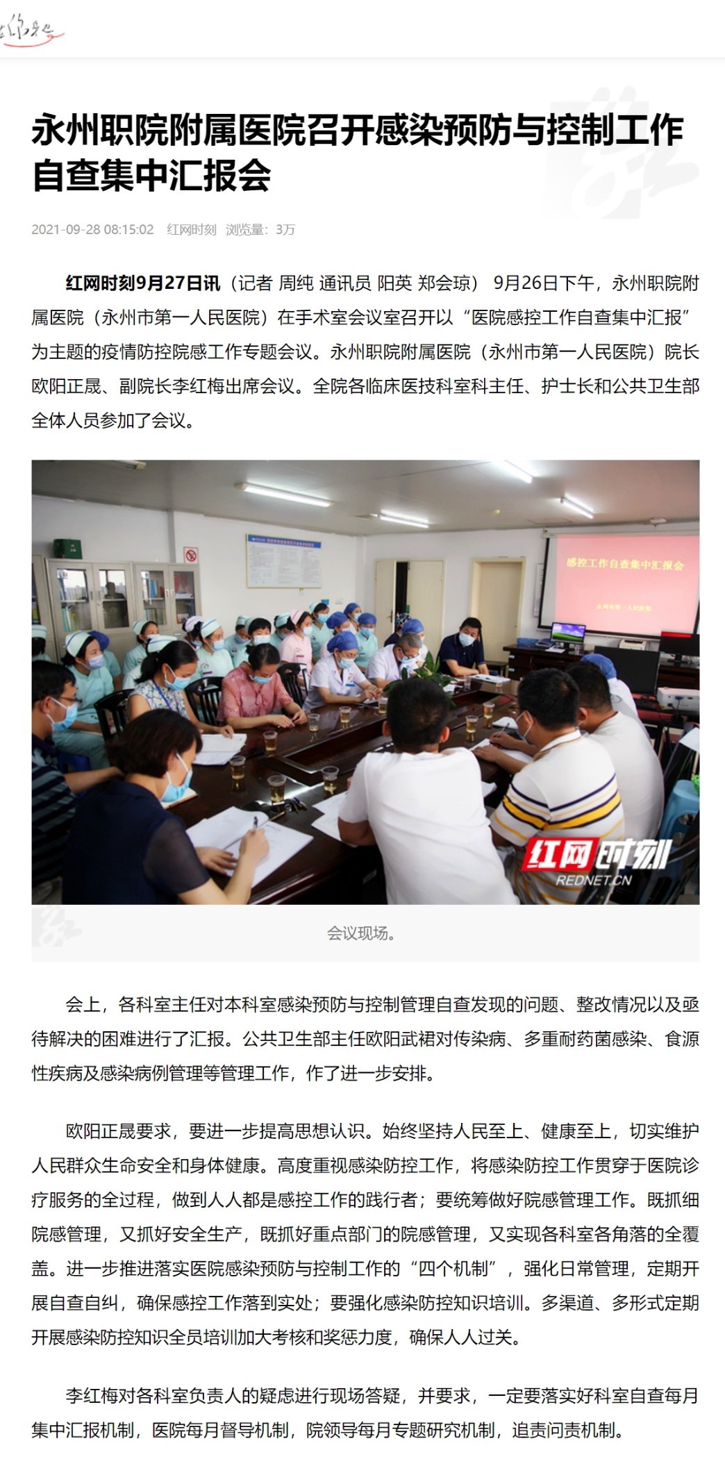 红网时刻9月27日讯(记者 周纯 通讯员 阳英 郑会琼) 9月26日下午,永州职院附属医院(永州市第一人民医院)在手术室会议室召开以“医院感控工作自查集中汇报”为主题的疫情防控院感工作专题会议。永州职院附属医院(永州市第一人民医院)院长欧阳正晟、副院长李红梅出席会议。全院各临床医技科室科主任、护士长和公共卫生部全体人员参加了会议。会上,各科室主任对本科室感染预防与控制管理自查发现的问题、整改情况以及亟待解决的困难进行了汇报。公共卫生部主任欧阳武裙对传染病、多重耐药菌感染、食源性疾病及感染病例管理等管理工作,作了进一步安排。欧阳正晟要求,要进一步提高思想认识。始终坚持人民至上、健康至上,切实维护人民群众生命安全和身体健康。高度重视感染防控工作,将感染防控工作贯穿于医院诊疗服务的全过程,做到人人都是感控工作的践行者;要统筹做好院感管理工作。既抓细院感管理,又抓好安全生产,既抓好重点部门的院感管理,又实现各科室各角落的全覆盖。进一步推进落实医院感染预防与控制工作的“四个机制”,强化日常管理,定期开展自查自纠,确保感控工作落到实处;要强化感染防控知识培训。多渠道、多形式定期开展感染防控知识全员培训加大考核和奖惩力度,确保人人过关。李红梅对各科室负责人的疑虑进行现场答疑,并要求,一定要落实好科室自查每月集中汇报机制,医院每月督导机制,院领导每月专题研究机制,追责问责机制。来源:红网作者:周纯 阳英 郑会琼编辑:陈小婷