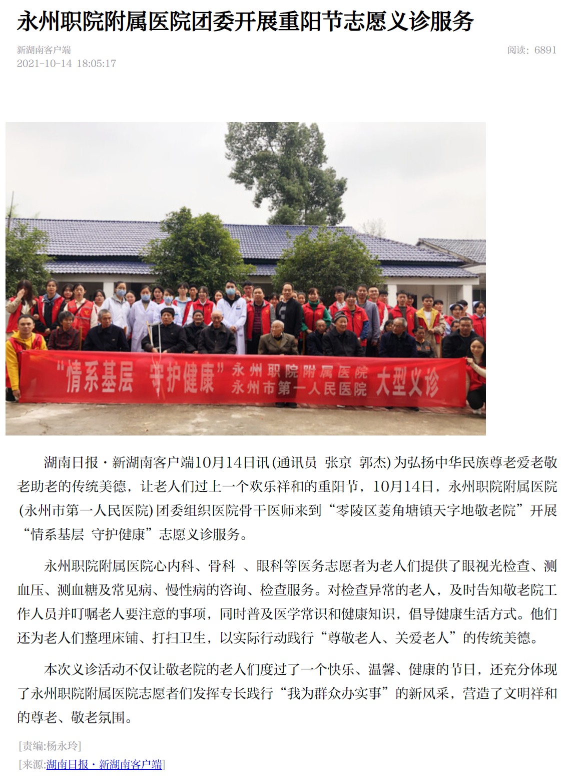 【新湖南】永州职院附属医院团委开展重阳节志愿义诊服务
