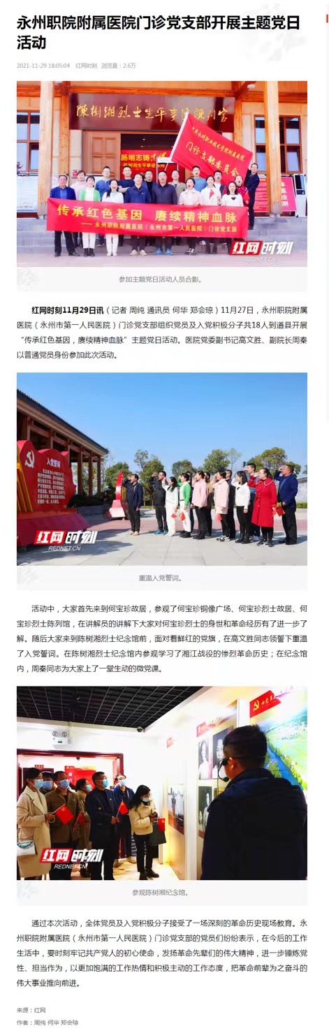 【红网】永州职院附属医院门诊党支部开展主题党日活动