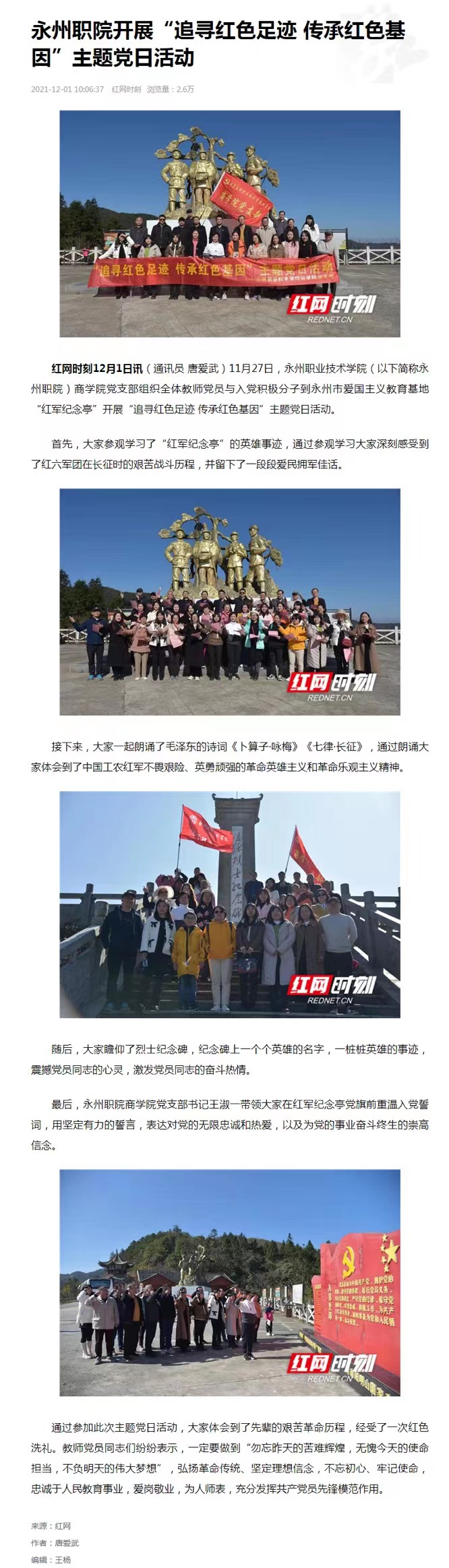 【红网】永州职院开展“追寻红色足迹 传承红色基因”主题党日活动