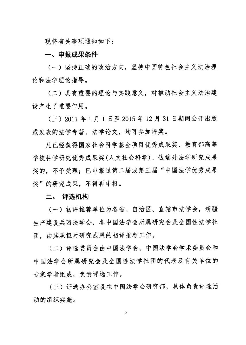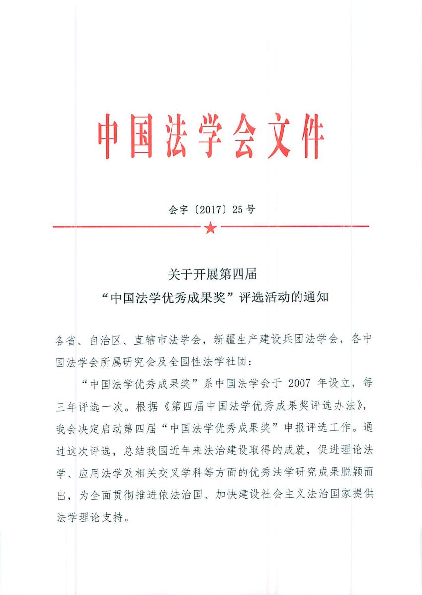 中国法学会关于开展第四届 “中国法学优秀成果奖”评选活动的通知.doc