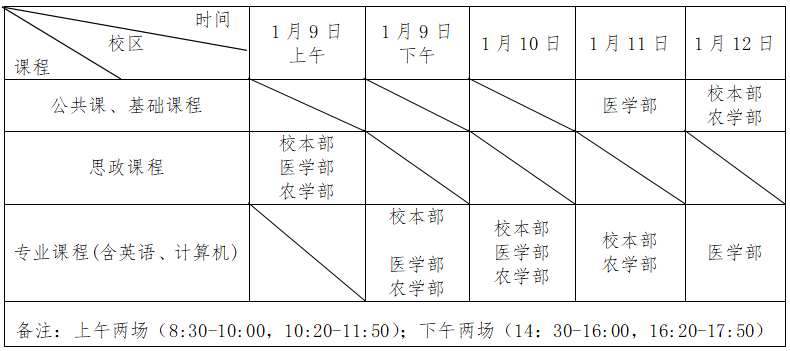 2.公共、基础课程的考试由公共基础学部组织,思政课程的考试由马克思主义学院组织实施
