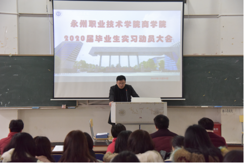 为更好地落实2020届毕业生实习工作,商学院于12月26日下午召开了学生实习动员大会。商学院蒋铁院长、王淑一书记等院领导、毕业班辅导员以及2020届实习生参加了会议,会议由院办主任贺全林主持,教务处实习管理科唐敏科长出席了会议。