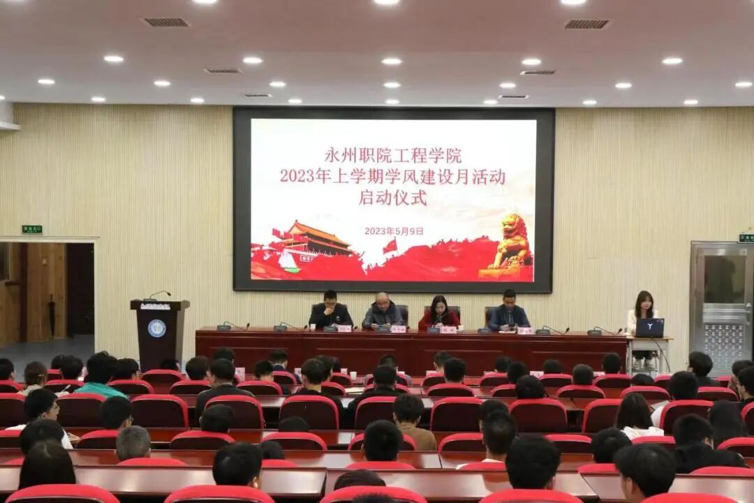 为进一步加强学生学风建设,增强学生学风意识,形成优良学风,提升人才培养质量,优化育人体系,落实立德树人根本任务,营造良好学习环境,5月9日下午,永州职院工程学院在三教101c举行2023学年上学期“学风建设月”活动启动仪式。工程学院副院长邓子林、副院长魏媛、学工办主任颜海燕、实训科科长刘东来、全体辅导员以及学生代表130余人参加启动仪式。