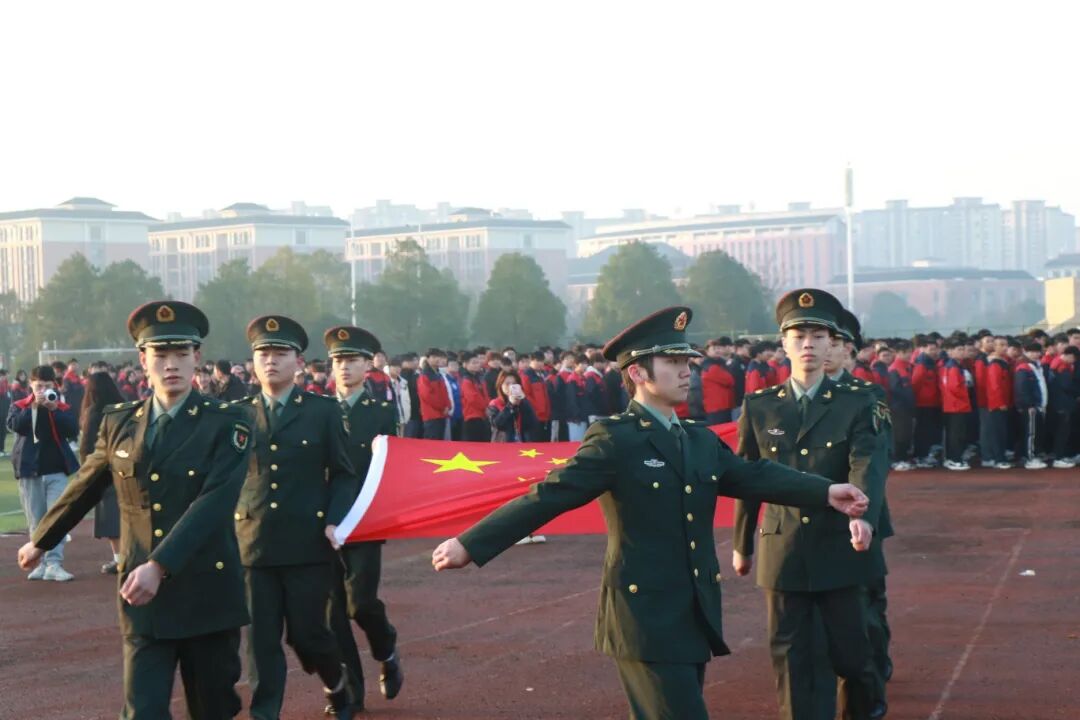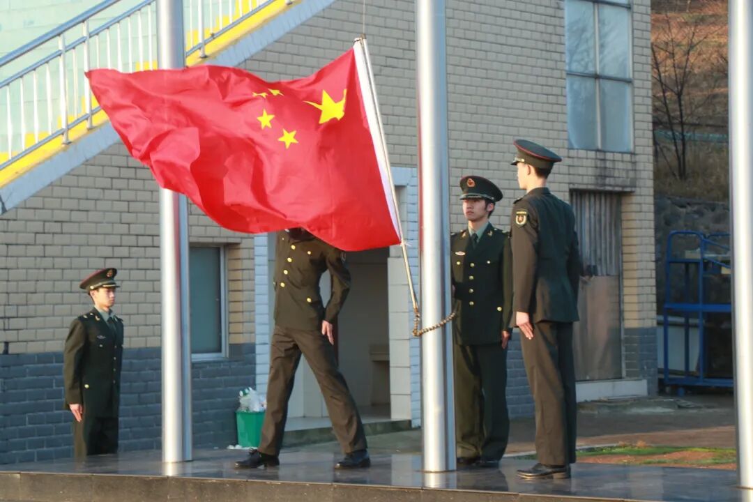 晨光熹微,东方欲晓。学院全体学生按时按点排好队形,伴随干脆洪亮的口号声,国旗护卫队迈着铿锵有力的步伐,同学们齐唱国歌,行注目礼。五星红旗冉冉升起,迎风飘扬。