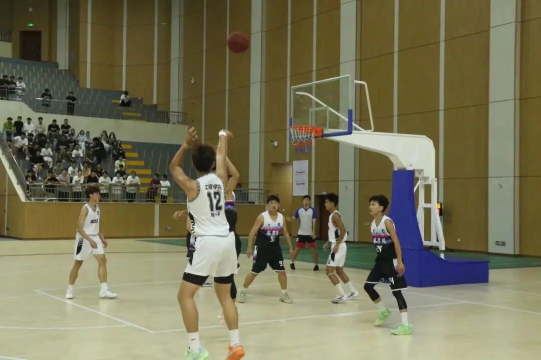 接球、旋转、跳跃,一系列眼花缭乱的精彩操作后得分,我们球员以他们的篮球技巧以及团队配合拿下了本届冠军,他们拥有着不惧困难的魄力,以及奋发图强的精神,最终得到了比赛的胜利,以此来继续书写属于工程学院的荣耀。接下来让我们来回顾下比赛时的精彩表现。