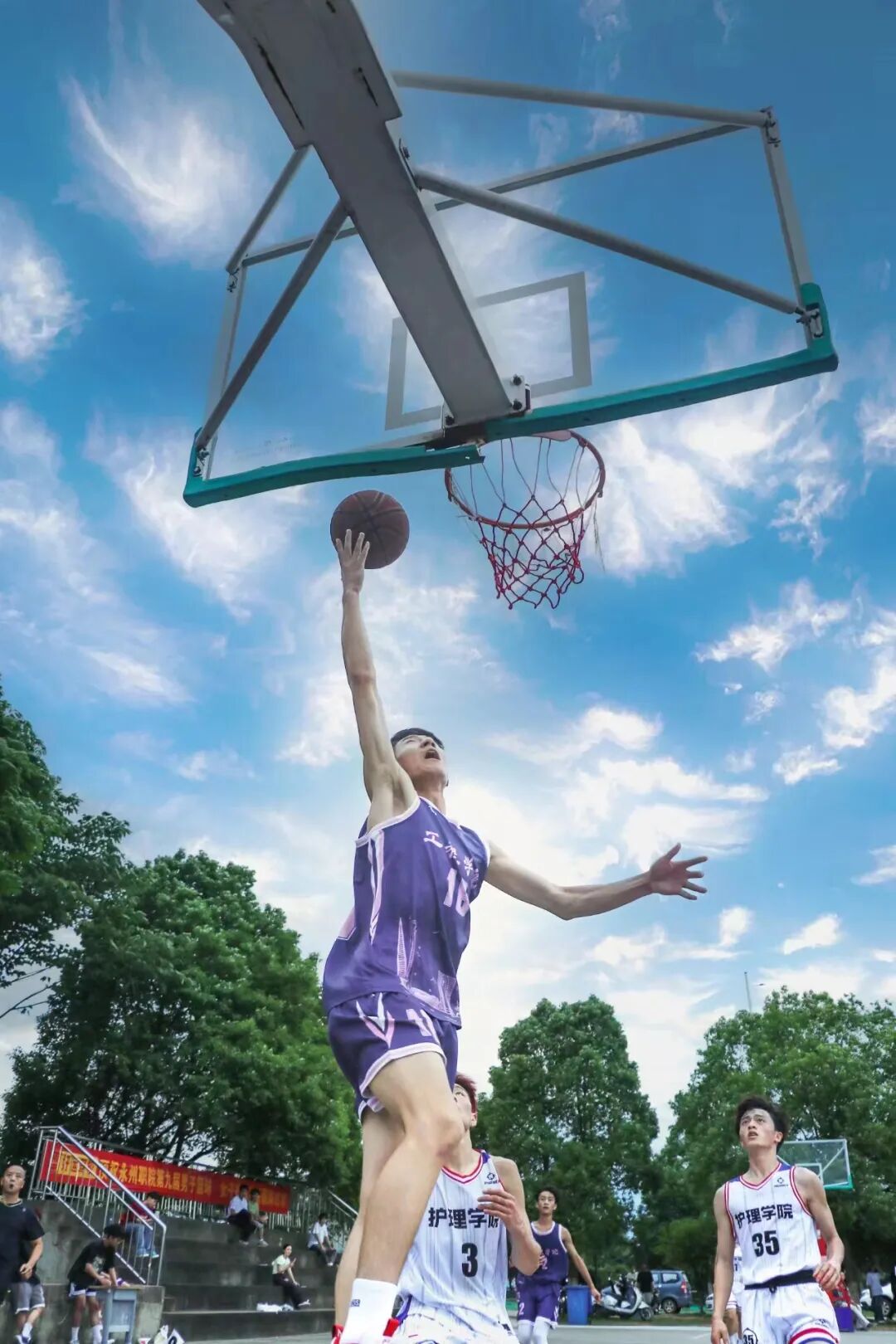 在最后一场比赛中,我们以56:32的成绩,击败医学院队荣获第九届篮球赛冠军,经过六场激烈的比赛,工程学院一队用汗水书写青春的篇章,同时给夏天的热烈给予回应。