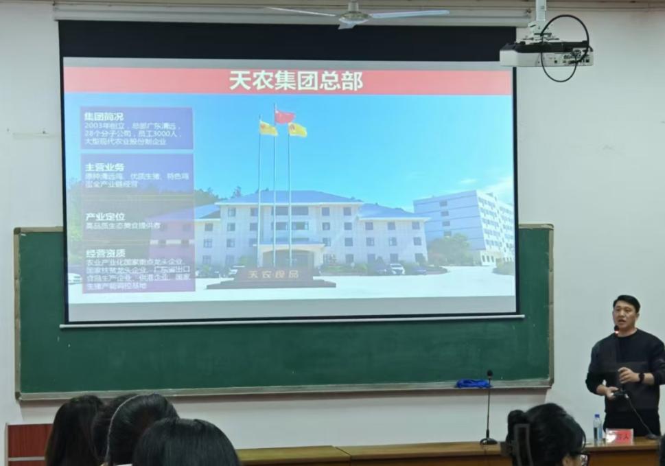 讲座在主持人的总结中圆满结束。本次讲座不仅让同学们深入了解了农业产业的前沿动态和发展趋势,更明确了自身的职业发展方向,为他们今后的学习和就业提供了有力的指导。同时,此次活动也进一步加强了农学院与广东天农食品集团的合作交流,为校企双方在人才培养、技术研发等领域的深度合作奠定了坚实基础,有望共同为农业产业的发展培育更多优秀人才,推动农业现代化进程迈向新的高度。