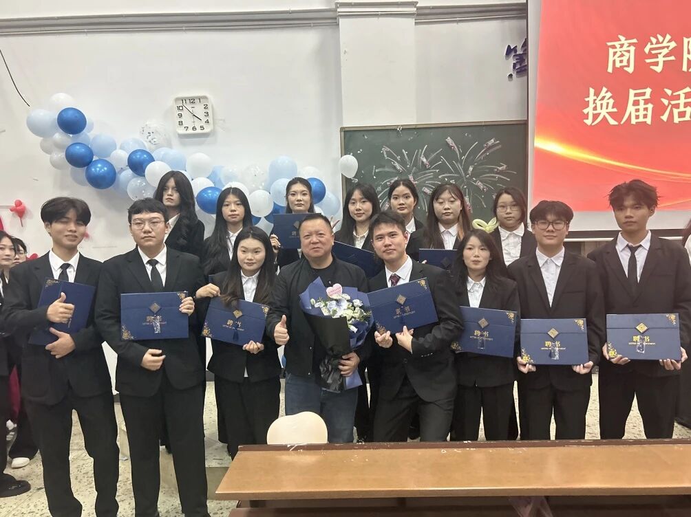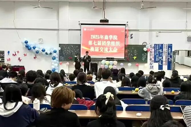 当青春的号角再次吹响,当责任的旗帜正式交接,2025年10月29日,商学院第七届团学组织换届交流大会在2-217C阶梯教室顺利召开。商学院党支部副书记毛辉斌、学生工作处学生管理科科长易超、商学院组织委员兼团委书记章静文、各辅导员老师,以及上一届学生会、团委全体干事齐聚一堂,共同见证团学工作的薪火交接,开启青春服务新征程。