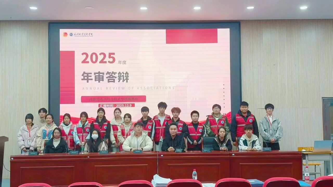 为进一步规范学生社团管理,全面检验社团年度建设成果,推动学生社团健康有序发展,2025年12月9日下午,永州职业技术学院2025年度学生社团年审集中答辩暨“十佳社团”评审会在工程学院101C顺利举行。本次答辩由校团委主办,校社团管理部承办,全校44个学生社团依次接受评审。