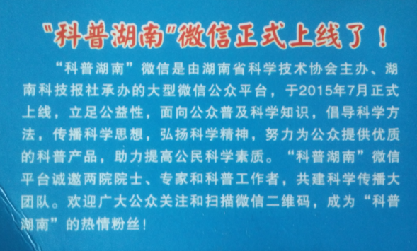 “科普湖南”微信是由湖南省科学技术协会主办,湖南科技报社承办的大型微信公众平台,秉承最权威、最快捷、最有效的方式传播科学,致力于提升公众认识科学、理解科学、运用科学的能力,服务经济社会持续、健康、和谐发展,助力实现中华民族伟大复兴的中国梦。 “科普湖南”微信是湖南省科学技术协会运用“互联网+”思维模式开展科普工作,推进科普信息化建设的一大创新举措。立足公益性,面向公众普及科学知识,倡导科学方法,传播科学思想,弘扬科学精神,努力为公众提供优质的科普产品,助力提高公民科学素质。 请各系部广泛宣传并做好科普志愿者信息注册登记工作(详细表格见附表),并于3月15日前加盖系部团总支公章上交至院团委办公室。 永州市科普志愿者信息注册登记表.xls