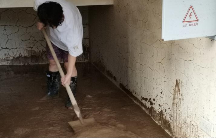后来我们又去到一家超市抢救物资,在边工作边跟员工闲谈的时候了解到,当时是凌晨三点多涨的水,完全反应不过来,人人都以为不会发洪水,没想到这么突然。超市里一片狼藉,淤泥下到处是散落的商品,根本分不清自己踩到的是什么东西,那些纸盒包装的货物无法售卖只能丢弃,电器的损失更是难以估计。看到这种情况,我们每一个人心里都非常的难受,大家更积极的投身清理工作中。