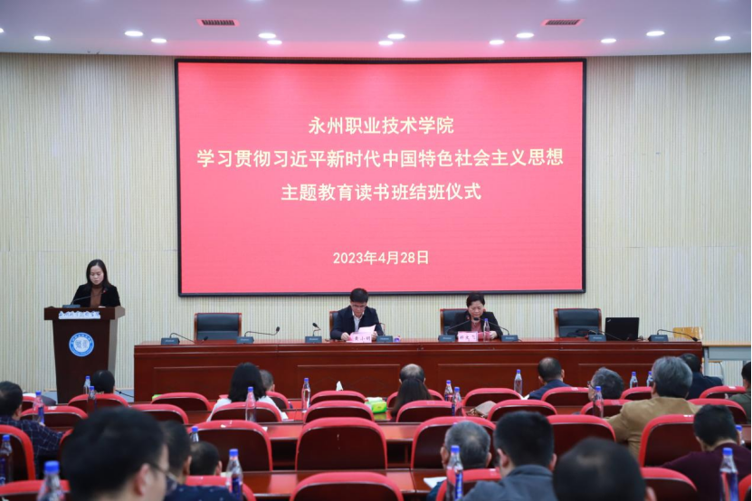 4月28日下午,为期5天的永州职业技术学院学习贯彻习近平新时代中国特色社会主义思想主题教育读书班(以下简称读书班)举行结班仪式。全体校领导、中层正职(含主持工作副职)通过集中自学、辅导报告、分组讨论等环节,集中精力系统学习了习近平新时代中国特色社会主义思想和党的二十大精神,重点学习研讨习近平总书记在主题教育工作会议上的重要讲话精神,沉下心来读原著学原文悟原理,高质量完成了各项学习任务。仪式由校党委副书记、校长郑文飞主持。
