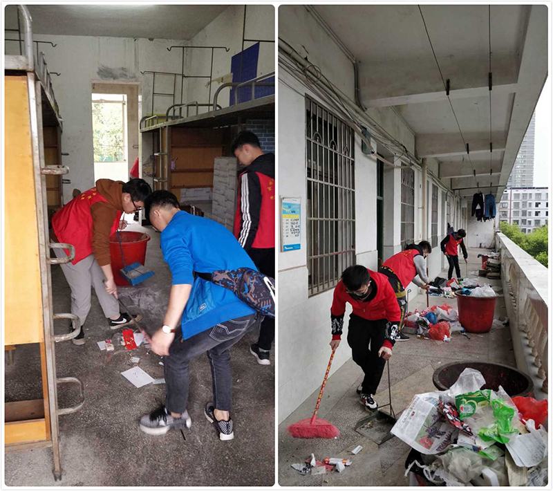 3月26日下午2:30计算机系学生会团总支学生干部30余人在周政华书记、校企学工办刘晨主任与莫凯迪老师和谢朋佳老师的带领下,自带劳动工具对学校办公区、宿舍区以及空宿舍等开展集中清理。