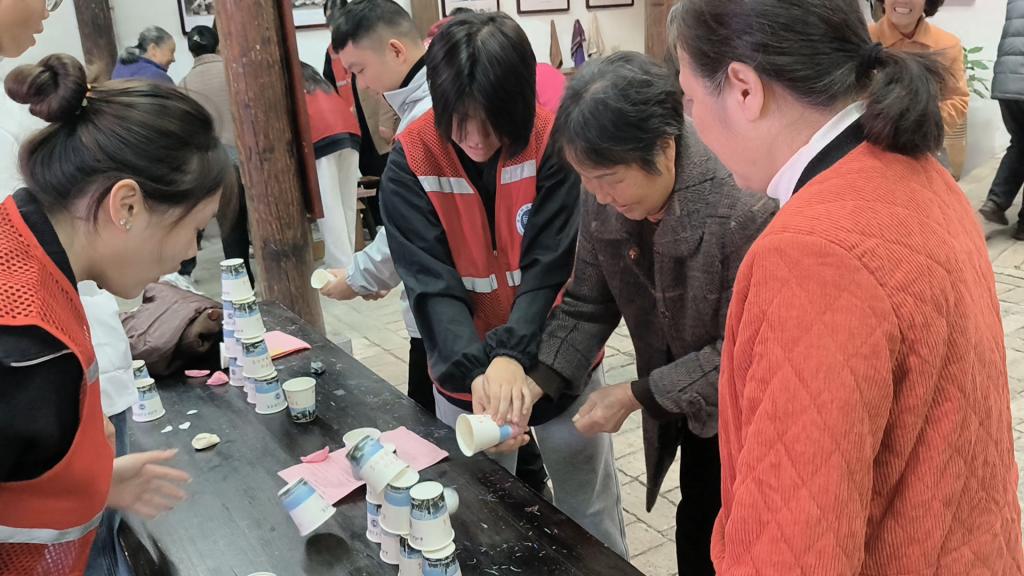 针对冬季光照减少易引发的情绪低落问题,随行心理咨询老师以“冬季好心情”为主题开展特色互动。通过“纸杯游戏”“情绪小纸条”、“趣味问答”等轻松形式,引导老年人主动敞开心扉表达感受,随后深入浅出地讲解冬季情绪波动的生理及心理成因,传授正念呼吸、兴趣转移等简单易行的调节技巧。现场笑声与掌声交织,温馨氛围感染着每一个人。