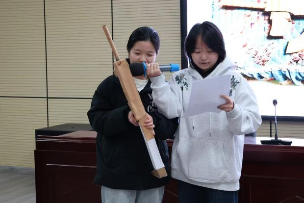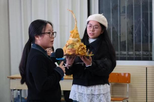 决赛现场,各参赛队伍依次登场,在3-4分钟内通过实物演示加讲解,呈现作品创作故事。枯叶拼制的艺术造型、废旧材料捏塑的景观模型、纸板制作的创意器械、废纸与闲置饰品改造的手工装饰……所有作品均以废旧物品为核心原料,物尽其用。选手们分享了创作灵感、材料收集改造过程及环保理念,聚焦资源再利用与闲置循环,践行“低碳简约、废旧再生”理念。