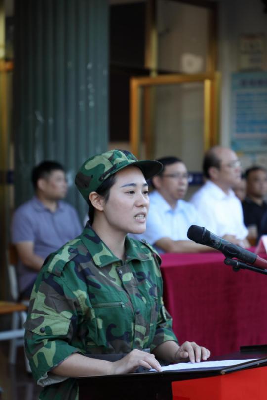 新生代表向慧灵(2025级口腔技术2班)动情发言:“今天换上迷彩服,我们才真正明白大学生活的成长不仅有课堂知识,更有军训场上的意志锤炼。”她代表全体新生承诺:“这里没有‘我’,只有‘我们’;没有单独的优秀,只有集体的荣光!”