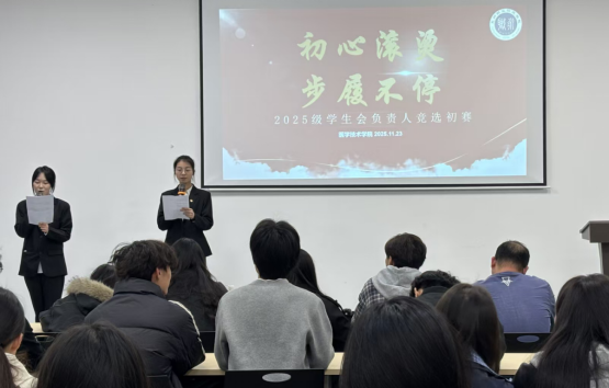 本次竞选分为学生会与团委两场,分别于11月18日和11月23日晚上在医学技术学院第八阶梯教室隆重举行。活动吸引了众多怀揣热情与梦想的新生积极参与,他们以饱满的精神状态,齐聚一堂,共同角逐进入复赛的宝贵机会。学院团学组织主管老师顾思群、李强及各部门负责人亲临现场,担任评委,为选手们的表现进行专业点评与指导。