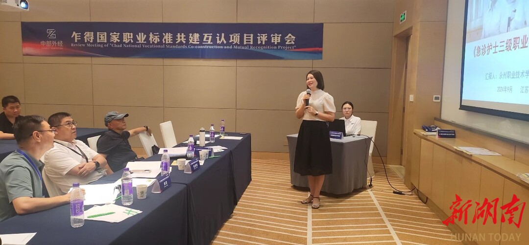 2024 Education Plus第八届国际职业教育大会暨产教融合博览会于9月11日至14日在江苏无锡市召开。永州职业技术学院护理学院周艳云老师参加了乍得国家职业标准共建互认项目评审会。评审会上,周艳云向专家进行了《急诊护士三级职业标准》认证汇报,并详细地回答了专家提出的问题,获得了专家的一致好评。