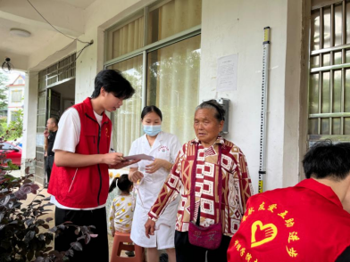在健康咨询和义诊区域,入党积极分子志愿者们忙碌而有序地为村民们测量血压、血糖,并根据检测结果为他们提供个性化的健康建议。对于血糖、血压偏高的村民,志愿者们详细询问他们的生活习惯和病史,提醒他们要定期监测身体指标,及时就医,并向他们传授了一些日常保健的小窍门。