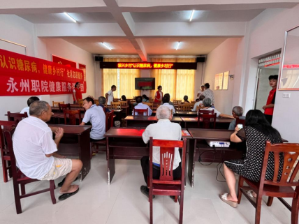 护理学院的师生党员们充分发挥专业特长,为村民们进行了一场生动实用的糖尿病知识讲座。他们用通俗易懂的语言,结合临床案例,深入浅出地讲解了糖尿病的成因、危害以及如何通过科学的饮食、运动和生活方式来预防和控制糖尿病。讲座过程中,村民们认真聆听,不时提出问题,师生党员们都给予了耐心细致的解答。
