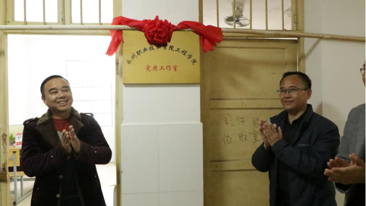 12月16日下午,我校首个大学生党团工作室进驻学生公寓,揭牌仪式在第三学生公寓举行。学校党委委员、组织部长熊礼杭出席揭牌仪式,工程学院相关负责人及部分教师党员、学生党员、入党积极分子代表参加仪式。
