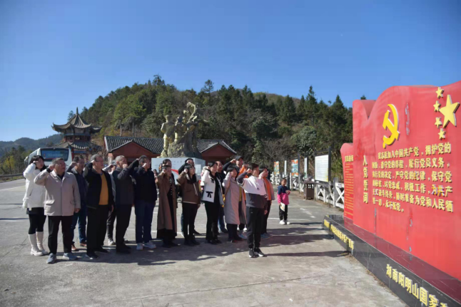 最后,党支部书记王淑一带领大家在红军纪念亭党旗前重温入党誓词,用坚定有力的誓言,表达对党的无限忠诚和热爱以及为党的事业奋斗终生的崇高信念。