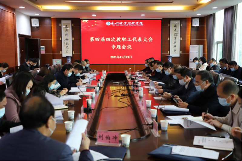 为促进“十四五”期间学校各项事业发展,增强可持续发展能力,提高学校综合能力和办学水平,2021年11月23日下午,学校召开了第四届四次教代会专题会议,听取和审议《永州职业技术学院“十四五”事业发展规划(2021—2025)》(草案)(以下简称“规划”)。学校党委书记黄小明,党委副书记、校长翟惠根,党委副书记李国春及在家的校级领导、学校第四届四次教代会主席团成员、代表团团长及部分教代会代表近60人参加审议,李国春主持会议。