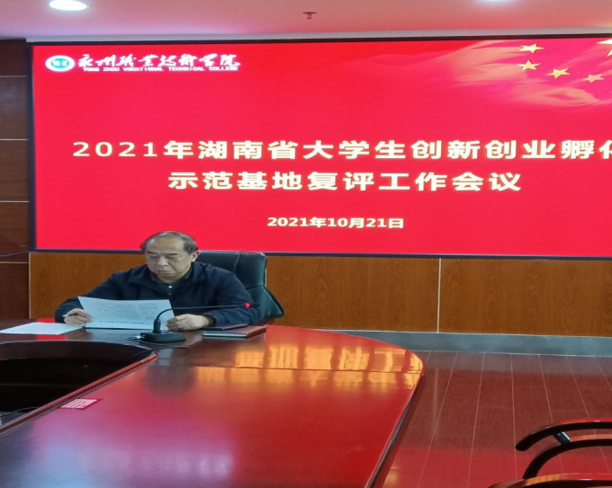 10月21日下午,我校2021年下期创新创业暨湖南省高校大学生创新创业孵化示范基地复评工作会议在办公楼三楼会议室召开。校党委副书记、校长翟惠根出席会议,各相关部门负责人、各二级学院党政负责人、创新创业学院全体人员参加会议。会议由党委委员、副校长窦铁生主持。