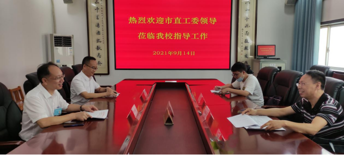 9月14日下午,市直工委副书记伍绍东率专项检查组来我校调研督查党建工作,党委副书记李国春,党委委员、组织部部长熊礼杭同志陪同督查。