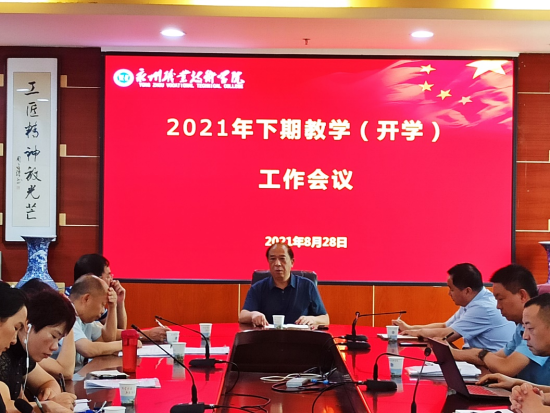 会议通报了新学期开学准备、教师定位、班级教室安排及教材到位情况,对学生专业技能抽查、实习实训、职业技能竞赛、专业人才培养方案检查、新增专业合格性评价等本学期教学重点工作进行了部署。同时通报了2021年全省高职高专院校公共课教学改革劳动教育培训项目完成情况。会议要求在教学任务空前繁重的情况下,确保341个在校班级顺利开课,教学秩序稳定。各学院负责人就开学工作存在的困难和急需解决的问题在会上进行了说明。