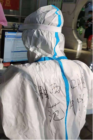 “只要国家需要我,我必将义无反顾奔赴前线,为抗疫奉献自己的一份力量,牢记学校主教楼前的医学生誓言!”近日,永州职院医学院19级口腔医学4班学生范明阳响应抗疫号召,一直奋战在吉首市党校核酸采集点。炎热的天气条件下,防护服密不透风,尽管他全身湿透,但仍然一直坚持着,因为物质紧缺,不想浪费抗疫物资。从下午4时到晚上10时,当他脱下防护服时,虽然满脸疲惫,但心里感到了无比充实和满足。