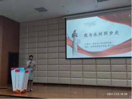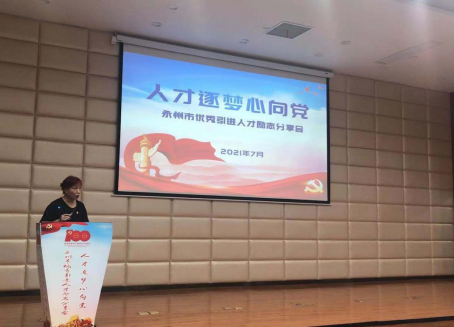 分享会上,永州市委组织部副部长艾建华同志致辞,寄语我市广大青年人才,要以此次分享会为契机,积极作为,在各自工作岗位上取得新的更大的成绩。我校2018年引进人才医学院教师黄仕芳作为优秀代表分享,以“我与永州同步走”为主题进行演讲,分享了自己四年来在理论实验教学工作、坚持科研创新项目申报及产学研结合等多方面的心得和感悟,同时对市委市政府及学校领导为其提供广阔的创业平台表达了深深的感激之情。对于未来,黄仕芳老师表示她将努力从党的百年历史中汲取智慧力量,从永州这片红土圣地吸取丰厚养分,扎根永州职业技术学院,创造更加精彩美好的明天!