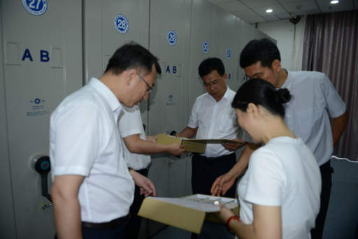 李国春对调研组一行表示了欢迎,并简要介绍了我校档案工作情况。听取汇报后,检查组一行对档案库房、阅档室、实物档案室进行实地考察。检查组肯定了我校的档案工作,建议加快推进档案信息化建设。