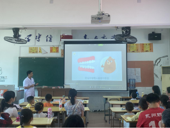眼视光专业王海营副教授和口腔医学专业唐岳鹏副教授在305、306教室开展健康讲座,并一一解答教职工和子弟提出视力与口腔方面问题。