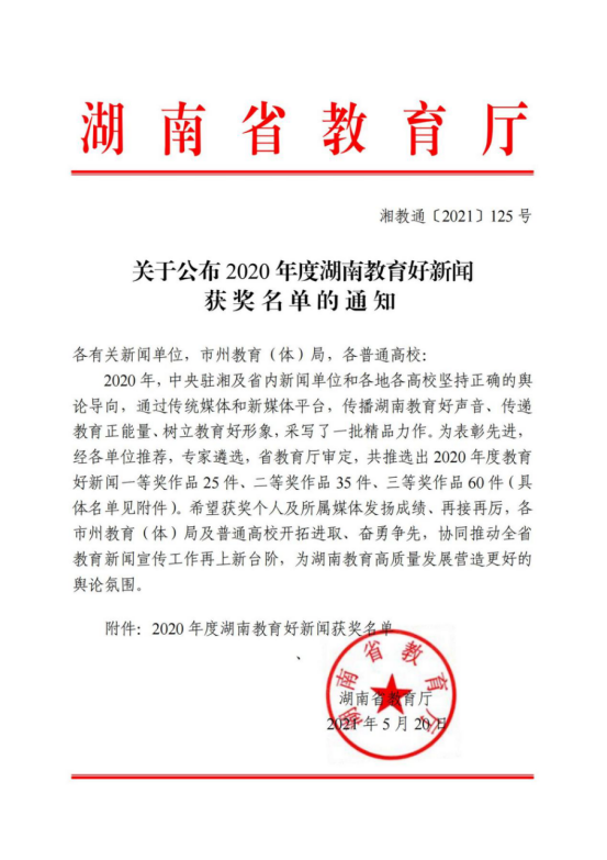 近日,从湖南省教育厅发布的湘教通〔2021〕125号文件