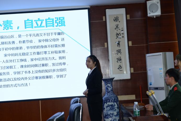 活动上,由各学院推荐的14名优秀学生代表进行了个人事迹汇报展示。同学们个个精神饱满,紧扣“励志、成才、感恩”主题,讲述了自己在国家资助政策帮助下的收获和进步,精彩的表现,赢得了现场观众和评委老师们的阵阵掌声。